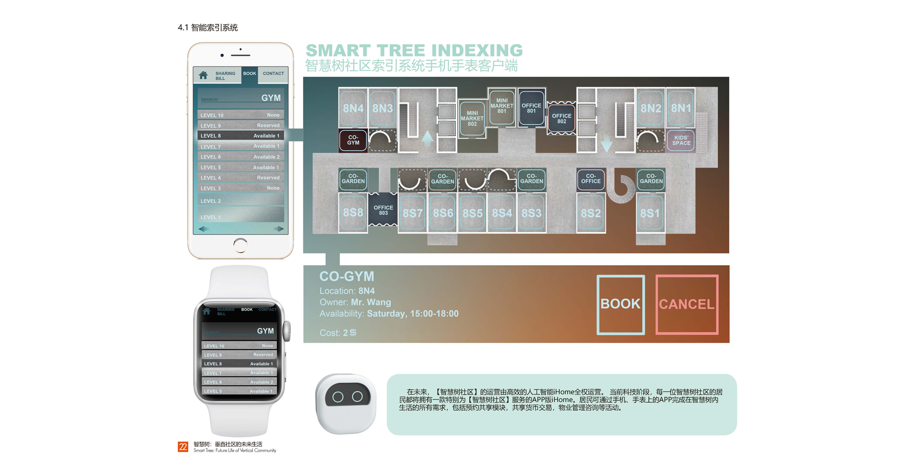 ? ? ?你可以用人工智能iHome來預約這里的共享空間。每一位社區(qū)的居民都是“智慧樹社區(qū)”APP上的用戶,它的功能很全面可以預約共享模塊、共享貨幣交易,物業(yè)管理咨詢等活動。