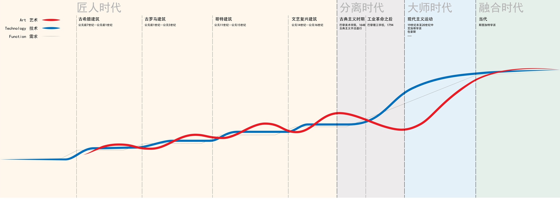 隨著結(jié)構(gòu)技術(shù)發(fā)展趨于完善和停滯,建筑行業(yè)主要討論的問題逐漸轉(zhuǎn)變?yōu)?/span>“如何讓房子看起來更美”時,建筑藝術(shù)試圖繼續(xù)發(fā)展并脫離技術(shù)的束縛。