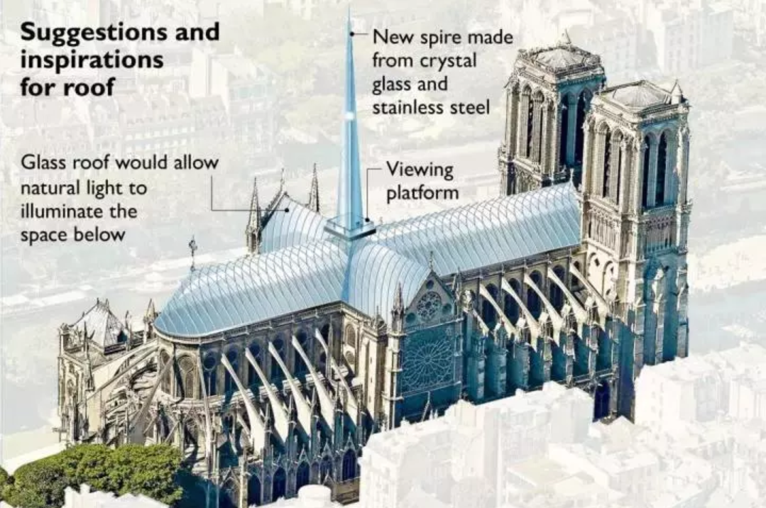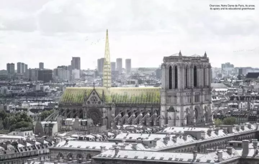 五個多世紀(jì)后的巴黎當(dāng)?shù)貢r間2019年4月15日下午近6時左右,巴黎圣母院發(fā)生大火,失火區(qū)域集中在教堂中后庭正在施工修復(fù)的部分。火災(zāi)發(fā)生后,法國總理宣布開展一項國際競賽來重新設(shè)計在大火中摧毀的屋頂與中心尖塔。短短幾天之內(nèi),網(wǎng)友們就已看到不少事務(wù)所公布的設(shè)計方案。