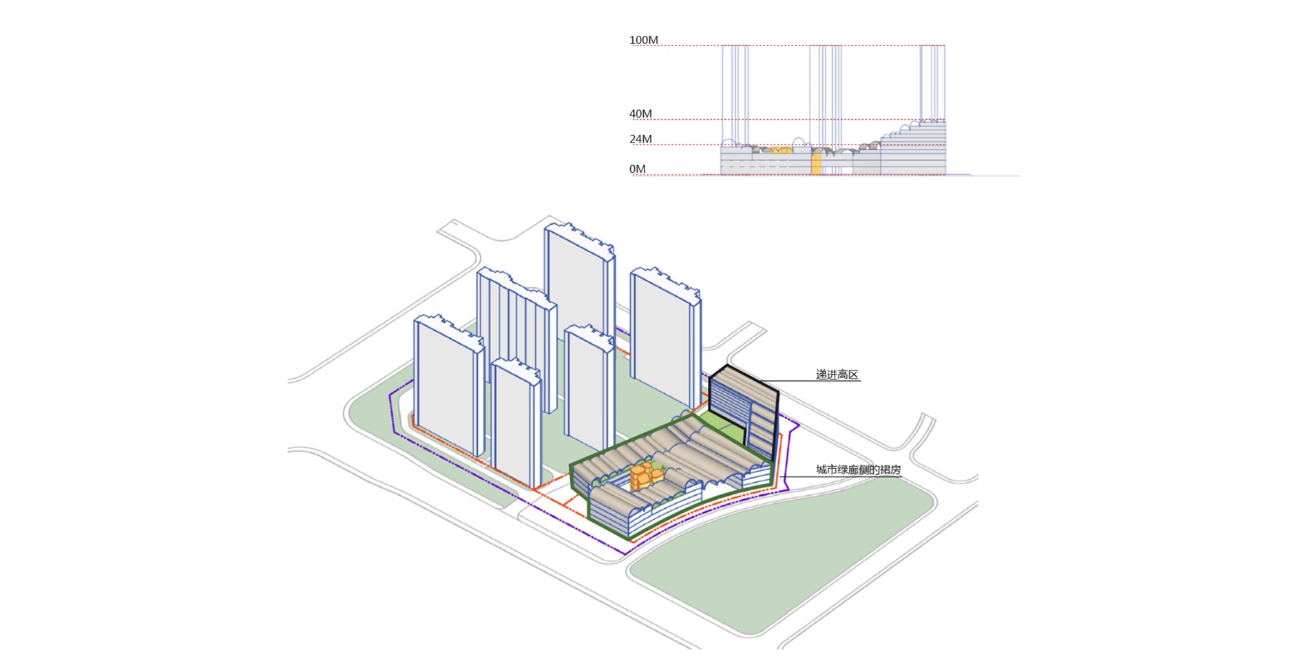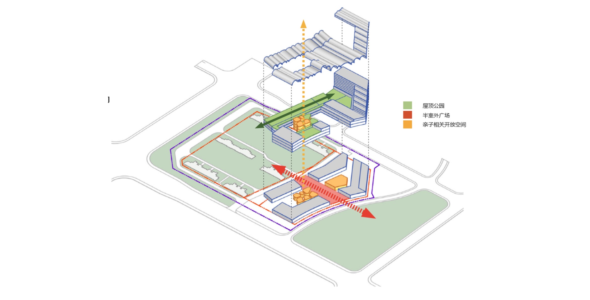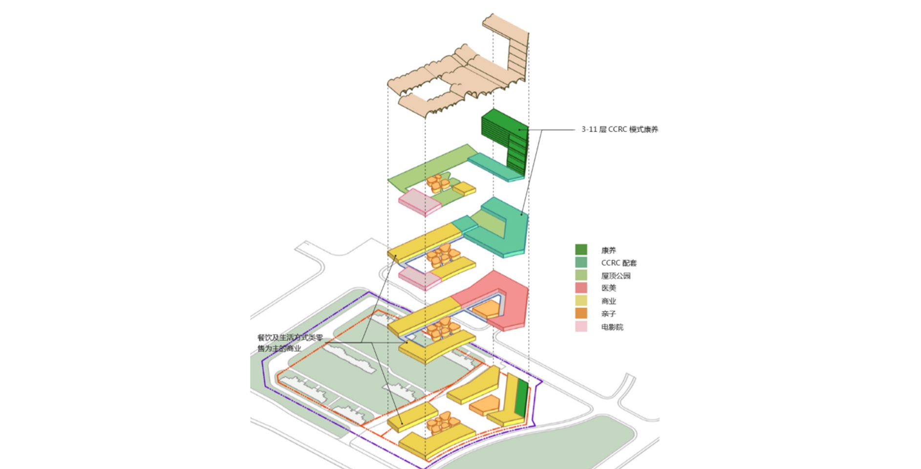 項(xiàng)目位于鎮(zhèn)江市中心,毗鄰城市綠廊、體育公園及大片中高密度住宅用地。該項(xiàng)目旨在營(yíng)造靈活多變的尺度適宜的新城市街區(qū),以新型社區(qū)商業(yè)和康養(yǎng)結(jié)合的組團(tuán)模式巧妙利用周邊資源,提供一個(gè)面向多年齡層的城市匯集地。