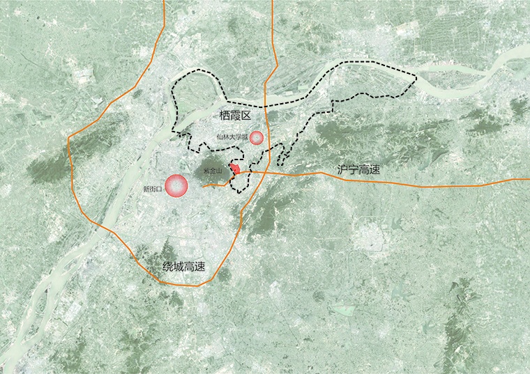 該項(xiàng)目場(chǎng)地位于南京東郊,紫金山東麓;南靠滬寧高速,西臨繞城公路,位于南京市主城與仙林新市區(qū)之間,占據(jù)重要的南京東門戶地段,距主城中心直線距離11公里,區(qū)位條件優(yōu)越。