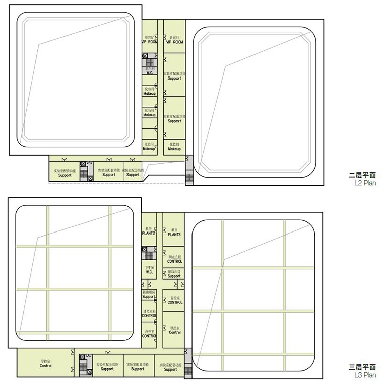 3.技術(shù)配套用房:設(shè)置于三層和負(fù)一層,可以同時(shí)服務(wù)于兩側(cè)的實(shí)驗(yàn)室。交通上可以便捷的到達(dá)各個(gè)功能分區(qū),管理便利;