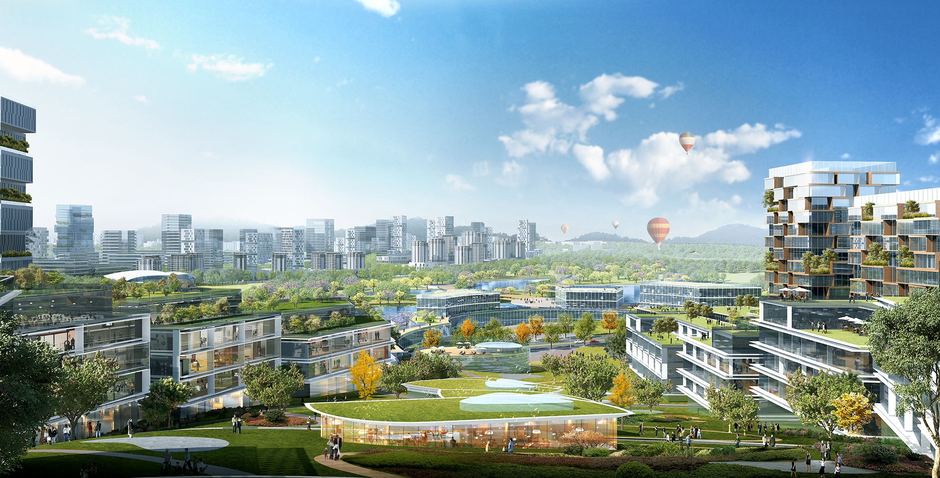 結(jié)合山地、西邊的湖、東邊的河,化劣勢為特色,打造順應(yīng)自然的山水TOD。