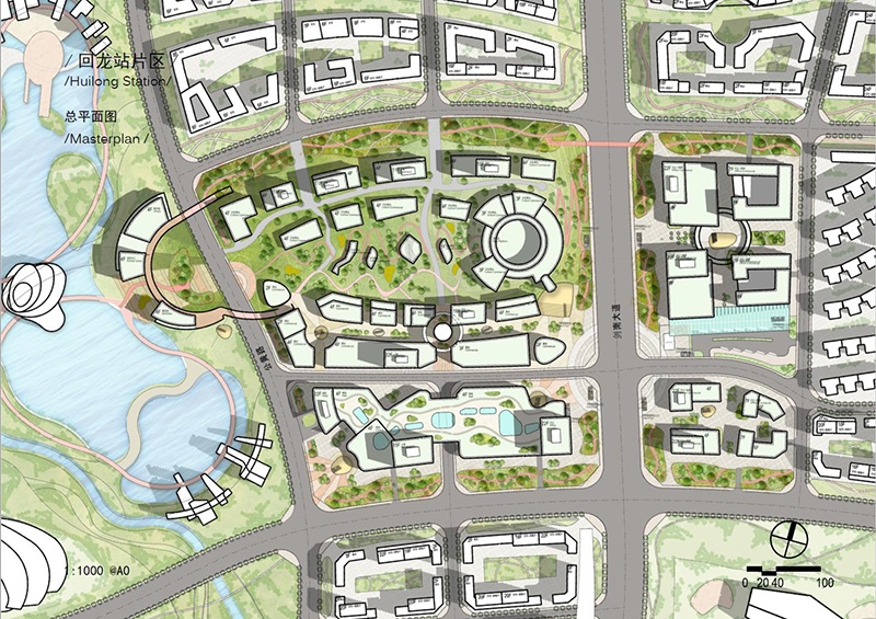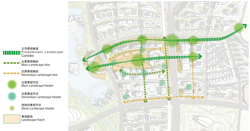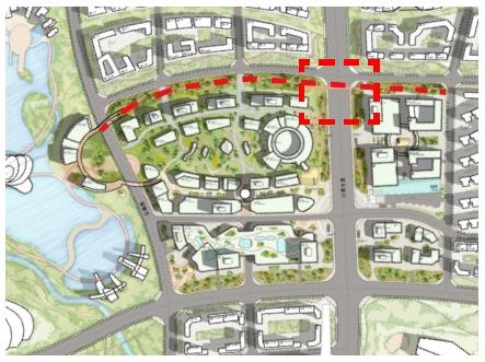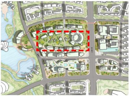 東面——商業(yè)辦公中心廣場,導(dǎo)向河邊共同形成主軸。