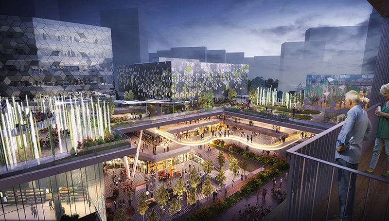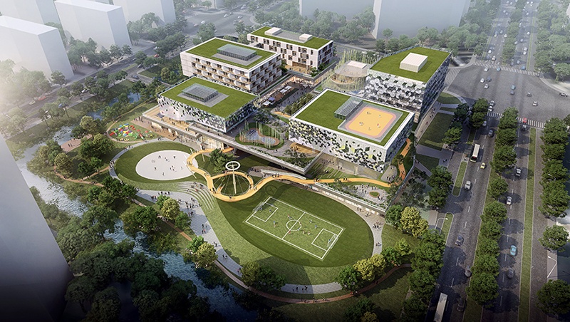 下圖為南京江心洲社區(qū)中心項目的效果圖